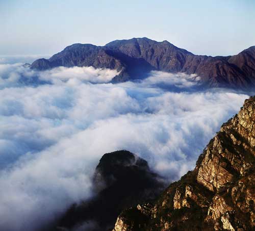 由于傍依大江、大湖,因此山上云霧繚繞,云海為其特色。宋代大詩(shī)人蘇東坡寫(xiě)的著名詩(shī)句:“橫看成嶺側(cè)成峰,遠(yuǎn)近高低各不同。不識(shí)廬山真面目,只緣生在此山中。”寫(xiě)的就是廬山云霧的奇景。在山上到處都可以看到云海,但最好的觀看云海奇景的地方是在花徑以西,佛手巖上望沙河一帶;或在牯嶺東北的小天池上望東林寺、西林寺、鄱陽(yáng)湖一帶。濃霧使人難以辨清哪是峰,頃刻之間,煙消云散,眼前又是一片秀麗景色。有時(shí),云霧冉冉上升,慢慢地竟將整個(gè)廬山淹沒(méi)在茫茫云海中。有時(shí)在廬山還可以看到“瀑布云”的奇景,有時(shí)它像是涓涓細(xì)流,流入幽谷,有時(shí)又似奔騰的江河,洶涌澎湃,飛流直下,