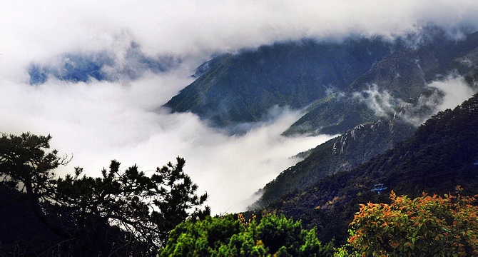 廬山處于亞熱帶季風(fēng)區(qū),雨量充沛、氣候溫和宜人,盛夏季節(jié)是高懸于長江中下游“熱海中”的“涼島”。廬山的年降水量可達(dá)1950—2000毫米,而山下的九江則為1400毫米左右,故山中溫差大,云霧多,千姿百態(tài),變幻無窮。有時山巔高出云層之上,從山下看山上,廬山云天飄渺,時隱時現(xiàn),宛如仙境;從山上往山下看,腳下則云海茫茫,有如騰云駕霧一般。有時山上暗無天日,山下則是細(xì)雨飄飛,情趣異常。
