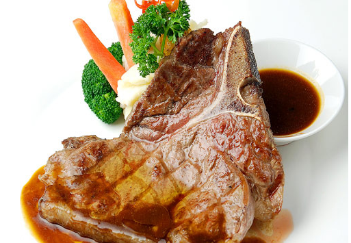 T骨牛排:意大利最出名的牛排位于佛羅倫薩。那里的牛排產(chǎn)自于意大利托斯卡納地區(qū),出師一般選用富有嚼勁的T字牛仔骨,用特制香料進(jìn)行腌制,然后按照客人的要求進(jìn)行烹調(diào)。T骨牛排富有彈性,粘連著牛骨的牛肉肥瘦相間,雪花適量,肥瘦適中。肥肉煎制后滲出適量的牛油讓整塊牛排更加香氣誘人。