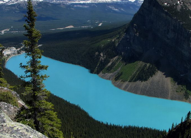 2.露易斯湖 :露易絲湖(Lake Louise)是班夫國家公園(Banff National Park)中最著名的景點,得名于英國露易絲公主的美麗傳說。公主不顧自己的皇室血統(tǒng),與平民羅恩相愛,于是這對年輕情侶被維多利亞女王貶黜到遙遠(yuǎn)寒冷的加拿大,露易絲湖就是對這段凄美愛情的紀(jì)念。如今露易絲湖就仿佛這位美麗公主發(fā)簪上的耀眼明珠,鑲嵌在純凈的翠山、藍(lán)天和白云之中。一年四季湖的景色都不同,夏天的時候湖水是明亮的碧綠色,仿佛遺落在落基山脈中的翡翠,而冬天湖面結(jié)冰,與維多利亞山上的白雪渾然一體,宛如冰雪國度。
