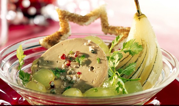 1.鵝肝:香醇細(xì)滑的肥鵝肝,是法國(guó)人圣誕、新年時(shí)候的節(jié)日大菜,也是受保護(hù)的文化遺產(chǎn)。很多人家里有自己腌鵝肝的習(xí)慣,商店里也有罐裝的鵝肝醬。因?yàn)閮r(jià)格不便宜,所以也有鴨肝(Foie gras de canards)做的替代品或者混合品,鵝肝所占比例越高則價(jià)格越貴。鵝肝通常是前菜,用來(lái)抹面包,配少許果醬。也有煎鵝肝的吃法,可以搭朝鮮薊、松露或蘋(píng)果、梨等配菜。