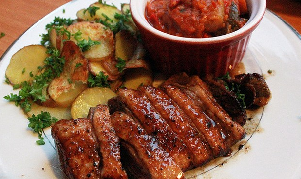 5.鴨胸肉:法國(guó)人嗜鴨肉,尤其是鴨胸肉。只有少部分品種的鴨子才能做鴨胸肉,并不是所有的鴨子胸脯都叫Magret的。有兩種經(jīng)典吃法:一是風(fēng)干(Séché),一是熱吃。前者脂膏豐腴,一般切成薄片作為前菜;后者按照烹飪火候(Cuisson)可以選擇讓廚師做成三分熟(Saignant)或者五分熟(Rosé),淋上意大利香脂醋。