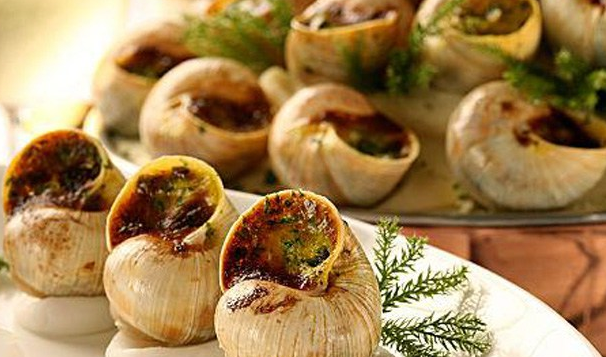 11.蝸牛:蝸牛也叫法國(guó)田螺,這是一道前菜,食材是勃艮第地區(qū)葡萄園中的蝸牛最為上乘。因?yàn)閭€(gè)頭大、肉質(zhì)緊密。法國(guó)蝸牛需要很長(zhǎng)的烹調(diào)時(shí)間,加入大量黃油,和大蒜等調(diào)味料一起烤制,噴香撲鼻,有的地區(qū)也有熬成湯的吃法。這道菜在中國(guó)很流行,似乎所有西餐廳都會(huì)做,但在法國(guó)出名更多的原因是過(guò)去蝸牛價(jià)格昂貴,貴族們以追捧這道菜來(lái)炫耀家底