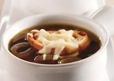 17.法式洋蔥湯:這種經(jīng)典的法國(guó)洋蔥湯其實(shí)非常好做,尤其是使用超市里現(xiàn)賣(mài)的牛肉湯來(lái)做的話(huà)。只要在每碗湯上放上一片棍子面包,再灑上適量奶油就行。