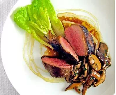 野菌釀鴨胸:野菌用的是荷蘭蘑菇,香味比中國蘑菇的濃,最容易吊出食材的味道。
