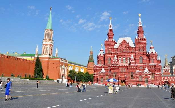 紅場:紅場是世界最著名的廣場之一,位于莫斯科市中心。在俄語中"紅場"意為"美麗的廣場",這個名字在1658年被沙皇所確認?,F(xiàn)在紅場的面積為700x130米,紅場是國家舉行各種大型慶典及閱兵活動的中心地點。它的西邊是克里姆林宮的紅墻及三座塔樓,南面的平臺是紅場上最古老的建筑--宣諭臺,宣諭臺的后面是"瓦西里·布拉任內(nèi)"教堂; 紅場的北端,有一座紅磚銀頂建筑,建于1847-1883年,是俄羅斯國立歷史博物館;南面,克里姆林宮正對著的是"國家百貨商場"。