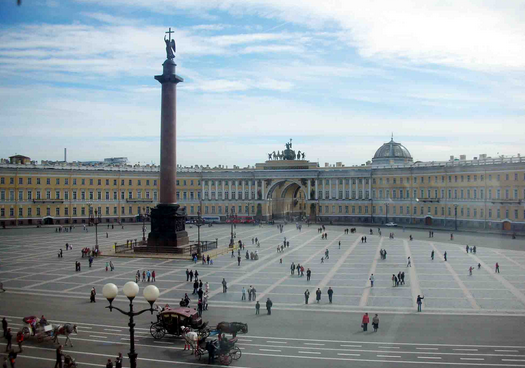 冬宮:俄羅斯著名皇宮,現(xiàn)為國立艾爾米塔日博物館。由著名建筑師拉斯特雷利設(shè)計,建于1754年至1762年的宏偉建筑呈現(xiàn)封閉長方形,是一座三層樓房,是18世紀(jì)中葉俄國巴羅克式建筑的典范。曾經(jīng)是沙皇的宮殿和住所,1922年起改作國家博物館。冬宮的四面各具特色,但內(nèi)部設(shè)計和裝飾風(fēng)格則嚴(yán)格統(tǒng)一。冬宮面向?qū)m殿廣場,中央稍微突出,有三道拱形鐵門,入口處有阿特拉斯神巨像。