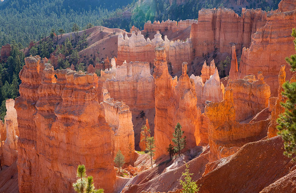 布萊斯峽谷國家公園:布萊斯峽谷國家公園(Bryce Canyon National Park)是猶他州面積最小的國家公園,位于美國猶他州西南部。其名字雖有峽谷一詞,但其并非真正的峽谷,而是沿著龐沙岡特高原東面,由侵蝕而成的巨大自然露天劇場。