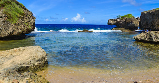 藍(lán)洞:藍(lán)洞位于塞班島的東北角,是與太平洋相連的天然洞穴,被《潛水人》雜志評為世界第二的洞穴潛水點。藍(lán)洞外觀看起來像張開嘴的海豚,內(nèi)部是一個巨大的鐘乳洞,由于巖石的陰影投射吸引了更多的水下生物,各式各樣五顏六色的熱帶魚、海龜、魔鬼魚、海豚、水母、海膽等等,甚至比海底的世界還要精彩斑斕。藍(lán)洞里面有兩個天然的游泳場,通過海底通道連接外部海洋。對于那些資深的深海潛水者來說,這將是一次無與倫比的體驗。受到海潮影響,有時洞內(nèi)的水平靜無波,有時又波濤起伏,所以在洞內(nèi)游泳、潛水要特別小心。另外,下藍(lán)洞的水泥石階又陡又滑,走路最好慢行。