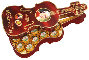 莫扎特巧克力產(chǎn)于薩爾茨堡,是一種巧克力加杏仁糖制成的巧克力球,在專賣店和各種商店均有售,有些大的超級(jí)市場(chǎng)也可以買到。