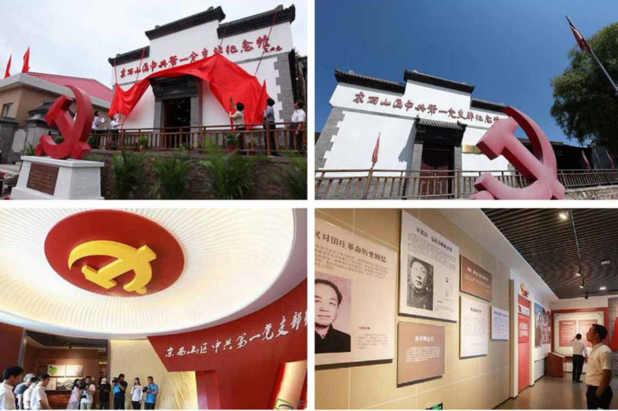 在田莊村文化中心旁建有京西山區(qū)中共第一黨支部紀(jì)念館展館,建筑面積144平方米。場(chǎng)館建設(shè)主要突出黨史教育功能,遵循與紅色旅游景區(qū)和整體旅游產(chǎn)業(yè)規(guī)劃相銜接、與周?chē)h(huán)境相協(xié)調(diào)的原則進(jìn)行建設(shè)。紀(jì)念館陳展主要借鑒國(guó)內(nèi)著名紅色旅游景區(qū)場(chǎng)館陳展經(jīng)驗(yàn),采取傳統(tǒng)與現(xiàn)代陳展手段相結(jié)合的方式進(jìn)行設(shè)計(jì),注重挖掘革命史、黨建黨史、戰(zhàn)斗歷程和歷史遺跡。館內(nèi)設(shè)1個(gè)展廳,陳展方式以壁畫(huà)、雕像、圖片展板等為主。