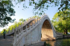 諧趣園:諧趣園在萬壽山東麓,是一個(gè)獨(dú)立成區(qū)、具有南方園林風(fēng)格的園中之園。清漪園時(shí)名叫惠山園”,是仿無錫惠山寄暢園而建。嘉慶十六年(1811年)重修后,取“以物外之靜趣,諧寸田之中和”和乾隆皇帝的詩句“一亭一徑,足諧奇趣”的意思,改名為“諧趣園”。園內(nèi)共有亭、臺(tái)、堂、榭十三處,并用百間游廊和五座形式不同的橋相溝通。園內(nèi)東南角有一石橋,橋頭石坊上有乾隆題寫的“知魚橋”三字額,是引用了莊子和惠子在“秋水濠上”的爭論而來的。
