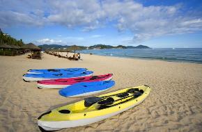 三亞大東海是海南著名的海灘之一。月牙形的海灣,遼闊的海面晶瑩如鏡,只見白沙融融,陽光、碧水、沙灘、綠樹構(gòu)成了一幅美麗的熱帶風光圖畫。鹿回頭與榆林港之間,從市區(qū)東行10分鐘車程便可到達。這里的海灣呈弓形,東南平行的兩條小山脈就像兩道堤墻筑入浩瀚的南海,鑄成海灣和屏障。
