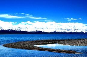 “納木錯”意為天湖、靈湖或神湖,是藏傳佛教的著名圣地,信徒們尊其為四大威猛湖之一,傳為密宗本尊勝樂金剛的道場。它的東南部是直插云宵,終年積雪的念青唐古拉山的主峰,北側(cè)倚偎著和緩連綿的高原丘陵,廣闊的草原繞湖四周,天湖象一面巨大寶鏡,鑲嵌在藏北的草原上。 清晨,湖面靄靄茫茫,周圍群山若隱若現(xiàn),太陽升起,云消霧散,清風(fēng)拂面,浩瀚無際的湖面蕩起漣漪,真似慈祥的仙女,手揮素巾注視頭著來人,這時的念青唐古拉山的主峰格外清淅,牧場一片淺綠,山體紅黑間雜,峰頂白雪皚皚,主峰如一個威武戰(zhàn)士守護(hù)著納木湖。高原氣候瞬息萬變,時而狂風(fēng)大作,時面烏云蓋天,風(fēng)雪過后,湖面依然波光粼粼。傍晚,湖水被夕陽的余渾照得霞光閃爍,真是迷人。
