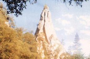 被稱為沙漠之舟,絲綢之路使者的駝峰嶺,綠裝翠裹,巍然屹立,迎接著游客的來臨。風(fēng)光無限的天窗眼更乃天下奇觀。世之罕見,在高插插云天的山壁上“洞天石扉,訇然中開”,仿佛觀察天體的放遠鏡,使我們看到那山外青山峰外峰的壯美景致。天窗眼往前,群山環(huán)繞,峭壁聳峙,壁角有藏龍洞,溪水入洞復(fù)出,婉若龍口吐珠;洞側(cè)有一巨石相對而立,稱虎探龍穴之石;抬頭仰望,天空被峭壁裁為月牙形,曰藏龍臥虎半月天。金剛峰和七夕橋中間的針葉林中,有一片特別引人注目的紅樺林,在綠色的點綴下,極為艷麗,惹人喜愛。那氣冠蒼穹,摩天頂立的玉柱,更使游人嘆為觀止。
