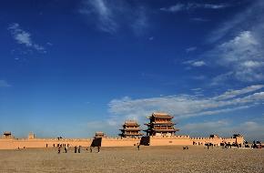 今天,嘉峪關經過修葺,仍可見當年雄險的邊關氣勢,登關樓遠眺,長城似游龍浮動于浩翰沙海,若斷若續(xù),忽隱忽現(xiàn)。天晴之日,或海市蜃樓,或塞上風光,奇特景色,盡收眼底。
