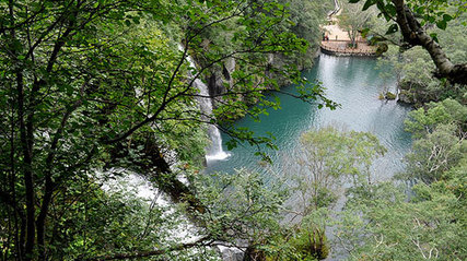 綠淵潭潭水上方的峭壁上有兩條小瀑布順流而下,更增添景致。下到綠幽潭的樓梯狹窄又陡峭,需注意安全,從綠淵潭下去一路都有標示,不能走回頭路,所以一般是先去小天池,再去綠淵潭。