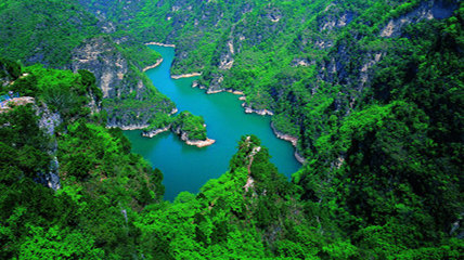 峰林峽以山水交融的翡翠湖為主體,融山的雋秀、水的神韻為一體,被譽(yù)為“人間天上一湖水,萬千景象在其中”,更有“雲(yún)臺天池”的美譽(yù)。境內(nèi)十里平湖宛若一條在峽谷中飄拂的玉帶,湖區(qū)島嶼星羅棋布,湖周峰巒起伏,湖面波光漣漪。