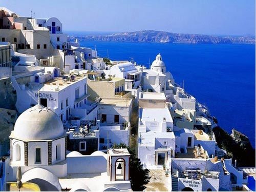 海天一色的圣托里尼島:演繹藍(lán)白色極致的日落小島。