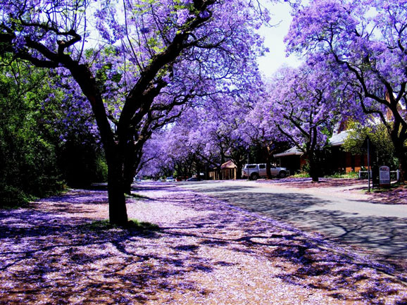 市面繁華,街頭清潔,風光秀麗,花木繁盛,這里有“花園城”之稱。比勒陀利亞城不大,卻種植有6萬多棵紫薇花樹。每年10月到11月,百花盛開,鋪滿整個街市,全城為此要舉行長達一周的慶祝活動。在這座精致安靜的小城里,綴滿紫色花蕾的樹木遍布城市里的每一條街道,盛開綻放,如夢幻般的美麗,置身其中,留戀忘返、如癡如醉。在長達半個多月的花期,人們像過節(jié)一樣四處賞花,陷入如癡如醉的狀態(tài),那陣勢頗有點像日本的櫻花。