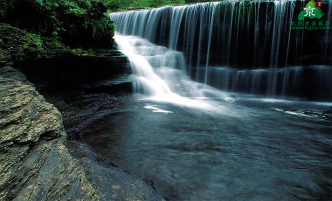 京都第一瀑位于北京密云縣石城鄉(xiāng)柳棵峪內,距北京103公里,黑龍?zhí)侗?公里,是由云蒙山泉水匯集而成,落差62.5米,坡度85度。是京郊流水量最大的瀑布。走進峽谷,未見瀑而先聞其聲。水從懸崖直瀉而下,云霧彌漫。遠眺,如玉柱擎天,雄偉壯觀。近看,銀花四濺,猶如白霧向空中噴涌。陽光照射,呈現(xiàn)出七彩虹,旖旎如畫,形成斑駁陸離的顏色。瀑下潭大而奇,深不可測。文人墨客詠詩贊嘆:“云蒙瀑鄉(xiāng)繡色錦,飛流直下雙白尺,京華瀑魁眾嘆服,嫦娥觀止不歸宮。”