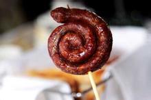 南非香腸 南非人民常常會(huì)自豪地告訴外國(guó)客人他們剛剛品嘗的美味香腸是蛇肉做的。那些外國(guó)人常常對(duì)此深信不疑。因?yàn)槟戏窍隳c,特別是當(dāng)它被買走時(shí)肉條卷在一起,而且香腸的厚度與一條蛇的厚度相差無(wú)幾時(shí),它就像是一條死蛇。然而南非香腸其實(shí)是由碎牛肉和一種奇特的南非混合香料制作而成的。它是烤肉野餐上最受歡迎的食物之一。