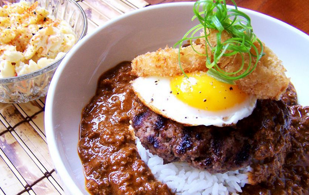 夏威夷式米飯漢堡: 夏威夷式米飯漢堡大胃口的人可以嘗試夏威夷式米飯漢堡(loco moco),這是將漢堡肉餅和雞蛋覆蓋在米飯上,再澆上鹵汁。全島各處都提供loco moco,但據(jù)說這個名字原創(chuàng)于位于夏威夷大島希洛的Café 100。